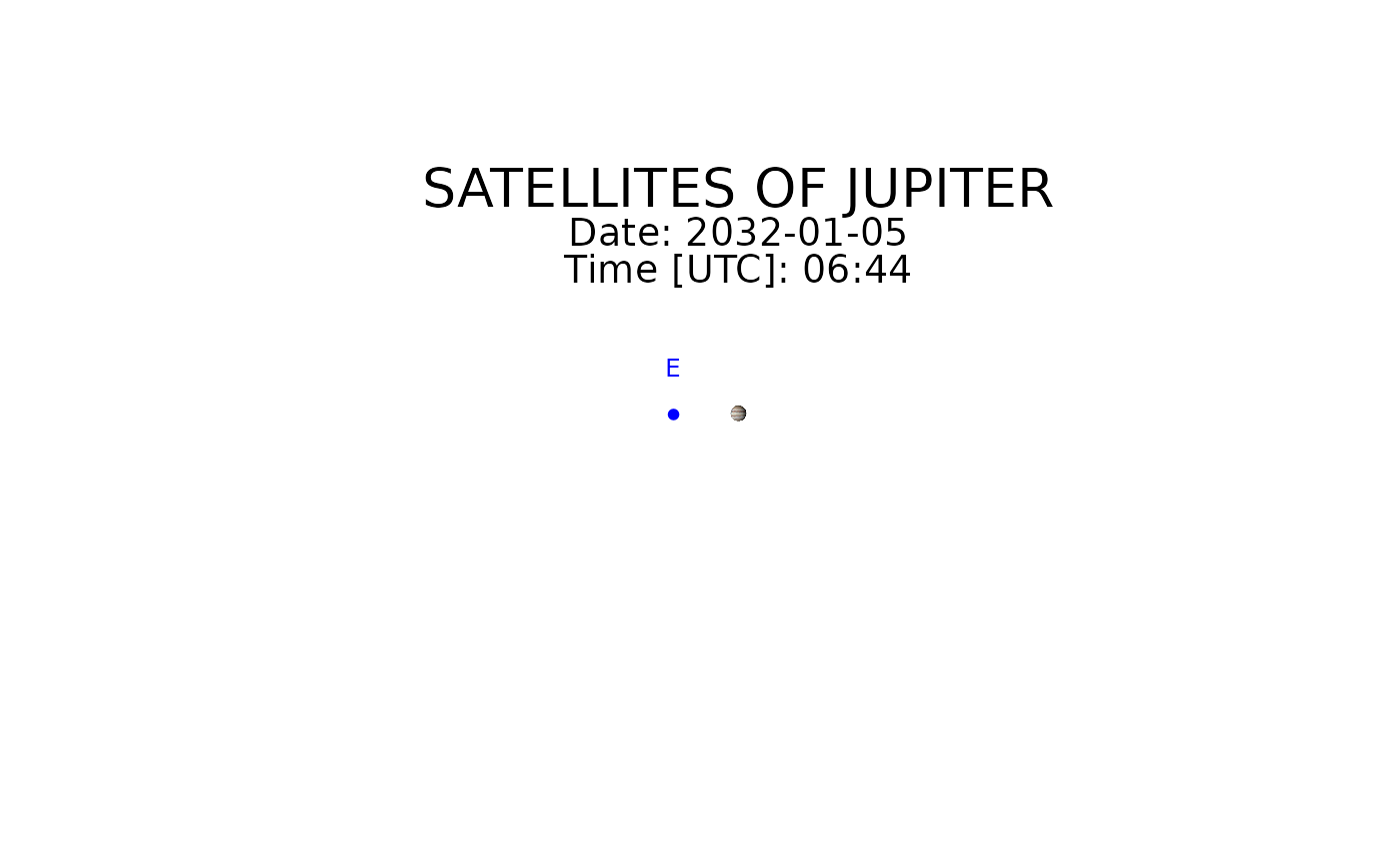 of Jupiter (called Galilean satellites). Positions are shown on the plot for